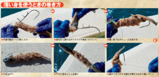 ちなみに身を表側にして巻くのは、タチウオがかじりついてきたときに身がポロポロとこぼれ落ちてコマセ効果が期待できるからです。