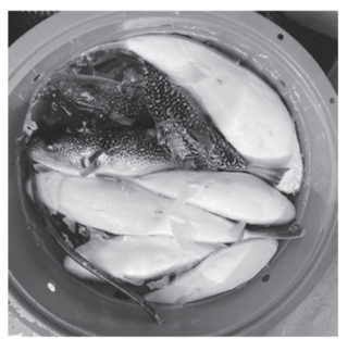 上がってきたのは30cm超えのフグで、腹を見ると虫が這い回っているのが見える。