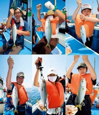 当日はファミリーや若者グループが乗船。大半の人がレンタル タックルでイナダの引きを満喫した